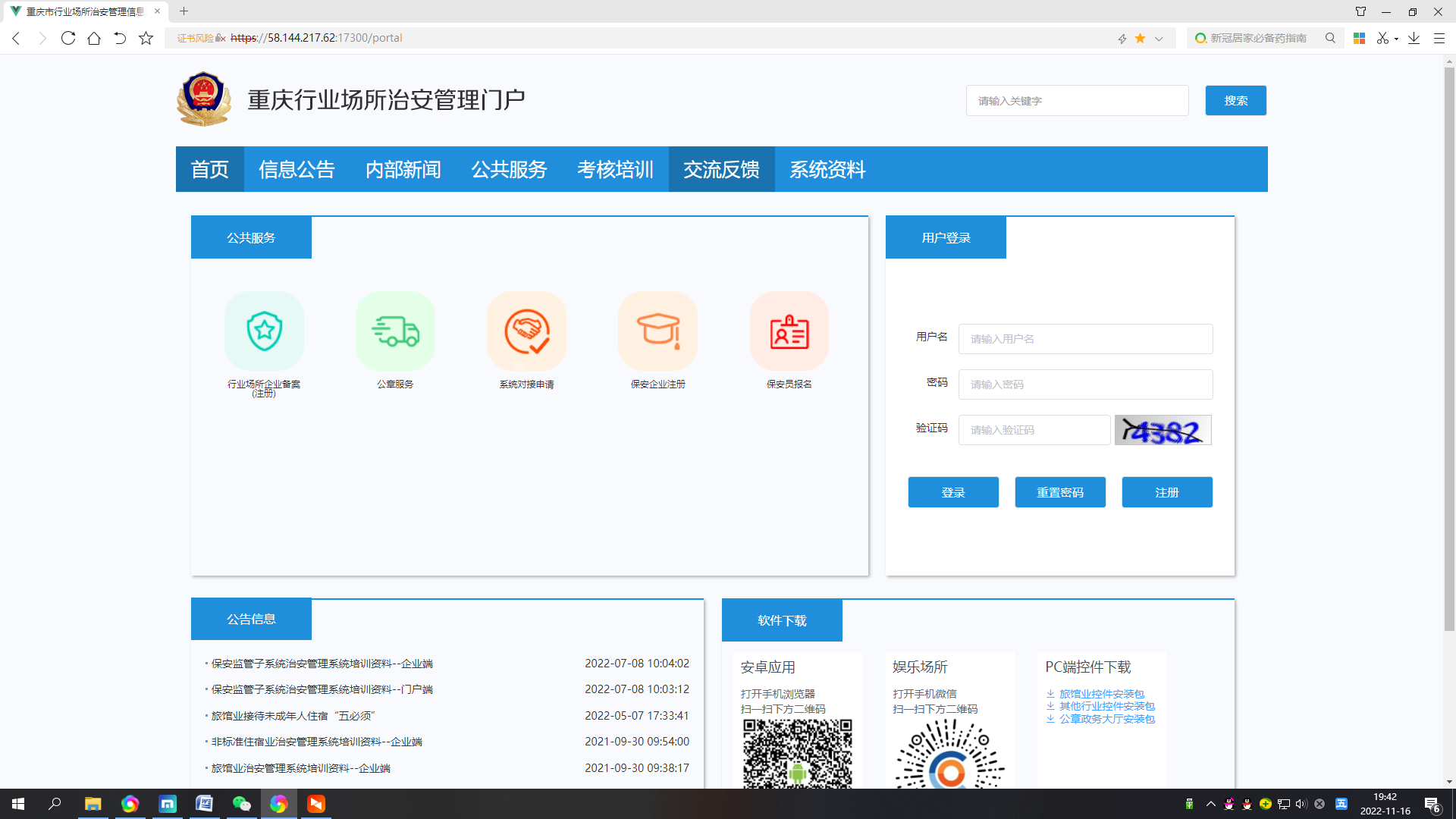 (2)查询时,请使用电脑打开“ 重庆市行业场所治安管理门户 ” 。打开网站时,可能会出现风险提示,这是由于该网站的网址是IP地址而非传的www,点击“继续访问”或“安全浏览”即可。