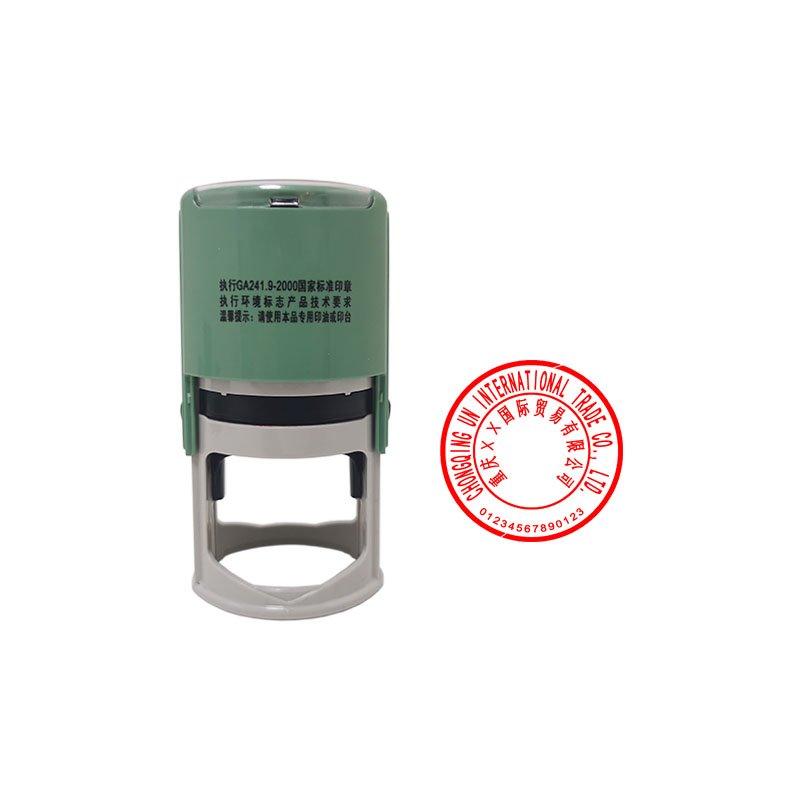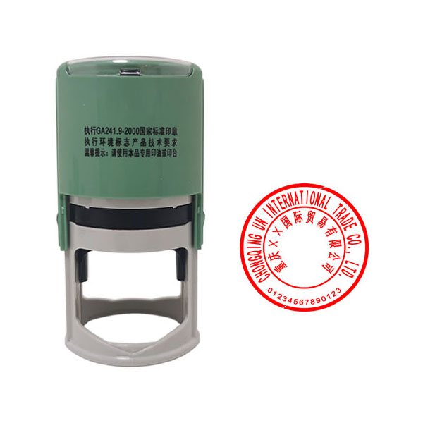 中英文公章,规格:42mm,由双圆组成,外圆刻企业英文翻译名称,内圆刻企业中文名称,印章中间不刊五角星,详见参考印记。