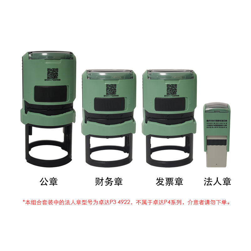 本订单为印章4件套组合套装,包含:公章、财务专用章、发票专用章、法人章各1枚,共4枚印章。需要4枚印章一起刻制的企业或个体工商户无需每枚印章单独下单,通过本订单即可一次实现刻制4枚印章。