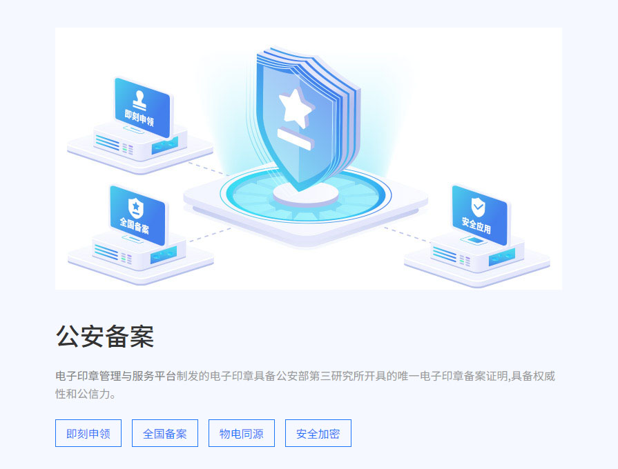 公安部第三研究所制发的全国唯一具备公安备案证明的电子印章,全国互认,物电同源。按年收费,328元/枚/年,续费同价。