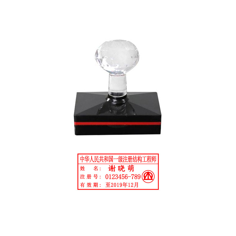 一级注册结构工程师执业印章,印模颜色为红色,由中华人民共和国(注册专业名称)、姓名、注册号、有效期和徽标5部分组成。