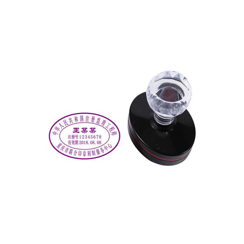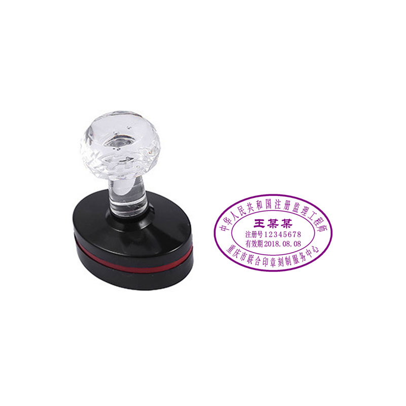 注册监理工程师执业印章,印迹颜色为紫色,规格44*29mm,由中华人民共和国注册监理工程师、姓名、注册号、有效期和聘用企业名称五部分组成。